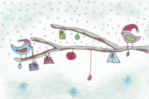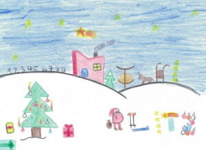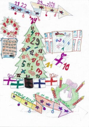 Vielen bunte weihnachtliche Zeichnungen: wir konnten drei Gewinner und Gewinnerinnen auswählen. Sie erhalten einen Bücher- oder Kinogutschein. Fünf Schülerinnen erhalten einen Trostpreis. Herzliche Gratulation!
